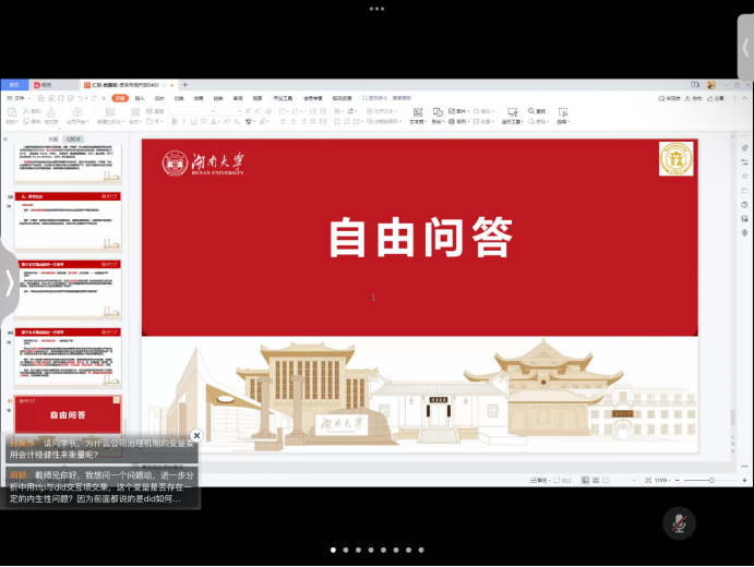活动最后,现场进行了问答互动,戴鹏毅就同学们提出的有关变量的衡量以及研究中可能出现的内生性问题等做出了解答并提供了宝贵的建议,本期博士创新论坛在大家的感谢中圆满结束。相信本次论坛的成功举办,能够进一步加深我校研究生在哲学社会科学类论文选题、写作的认识与理解,对提高研究生科研素养具有重要意义。