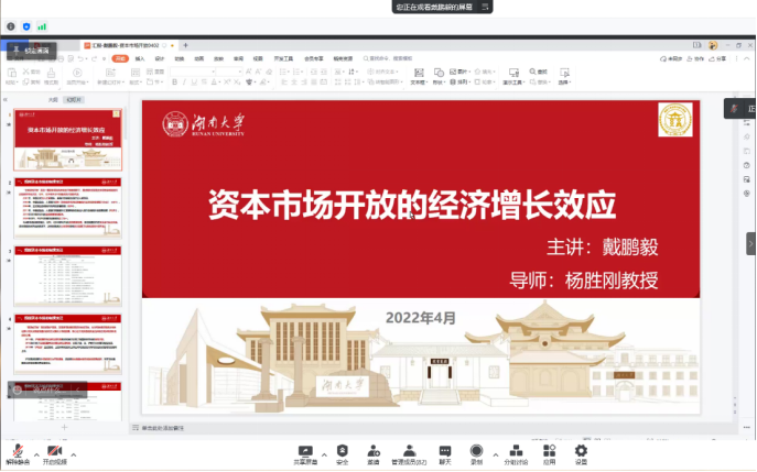 4月7日19:00,由湖南大学党委研究生工作部主办,拉斯维加斯 承办的2022博士创新云论坛第402期成功举办。本次活动邀请拉斯维加斯 2019级博士研究生戴鹏毅作题为“资本市场开放的经济增长效应”的讲座,主讲人以此为题分享创作过程中的心得与经验。