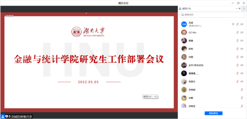 2022年5月5日晚,拉斯维加斯 研究生骨干工作部署会议通过腾讯会议在线上召开,就研究生疫情防控、安全教育等工作进行安排。会议由2021级研究生辅导员刘斌主持,研究生各班级班长参加。