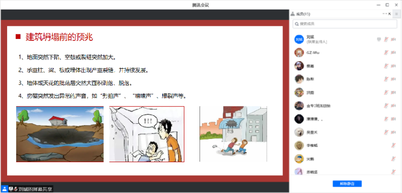 随后,刘斌老师就“远离危房”进行知识普及。说明了建筑物坍塌前的预兆以及当建筑坍塌后如何自救的措施,并动员各班有序组织“远离危房”主题教育班会,提高同学们危险防范意识及自救能力。