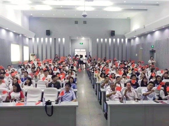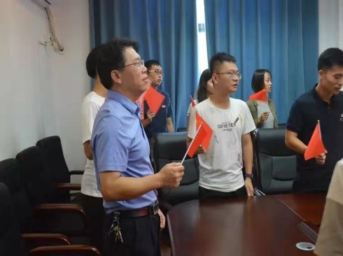 2号楼226会议室举行,党委书记聂国军老师带头观看“庆祝新中国成立70周年大会”直播。