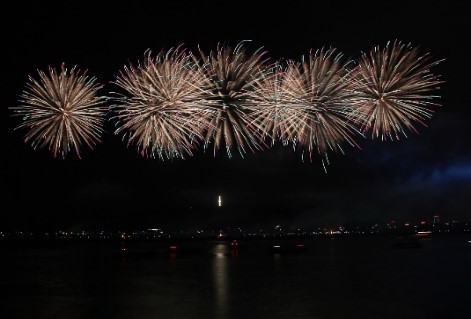 10月1日晚上8时30分,橘子洲焰火广场升起一场以 " 秋之颂 我和我的祖国 " 为主题的橘洲焰火,喜迎中华人民共和国成立70周年。近十万人齐聚湘江两岸,观看欣赏美轮美奂的烟花秀。