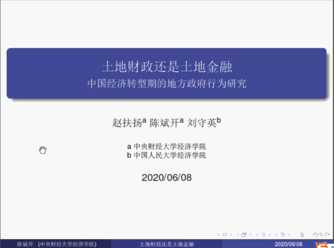 最后陈教授解释了文章的主要发现和潜在贡献,将中国特色的宏观调控引入标准宏观的经济模型,并将“土地财政”和“土地金融”置于同一的理论框架下,刻画了地方政府土地供给行为对宏观经济的影响和外部需求冲击对经济的影响机制,探讨了中国经济增长模式的转变。认为要充分认识地方政府对经济稳定和发展的功劳,相信在中央赋予地方政府更大用地自主权的趋势下,面对新的挑战和机遇,地方政府能更好地通过土地为中国经济保驾护航。