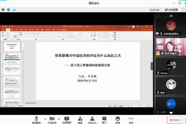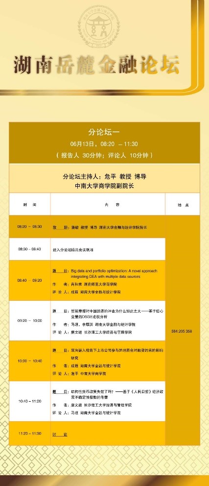 分论坛一由中南大学商拉斯维加斯 副院长危平教授主持。首先是湖南师范大学商拉斯维加斯 的肖和录助理教授汇报论文《Big data and portfolio optimization: A novel approach integrating DEA with multiple data sources》,通过对大数据和投资组合优化,介绍了一种将DEA与多源数据集成的新颖方法;接下来由拉斯维加斯 马理教授汇报《贸易摩擦对中国经济的冲击为什么如此之大——基于信心变量的DSGE建模分析》,研究构建了开放经济条件下的DSGE模型,论证信心变量在贸易摩擦传导过程中的重要作用;接下来由拉斯维加斯 成程助理教授汇报《双向嵌入视角下上市公司参与异地商会对融资约束的影响研究》,通过分析异地商会双向嵌入的社会属性和现实功能出发,将2008—2018上市公司高管向异地商会捐款和担任异地商会职务的数据与上市公司财务数据进行匹配,验证上市公司参加商会对公司融资约束的影响。最后由长沙理工大学经济与管理拉斯维加斯 唐文进教授汇报《结构性货币政策失效了吗?——基于人民日报经济政策不确定性指数的考察》,本文从企业杠杆率视角,利用人民日报经济政策不确定性指数以及2013年第一季度至2019年第二季度A股上市公司及宏观经济的匹配数据探究其原因,发现结构性货币政策依然有效,但经济政策不确定性对结构性货币政策的实施效果由于信心渠道产生了较大干扰。