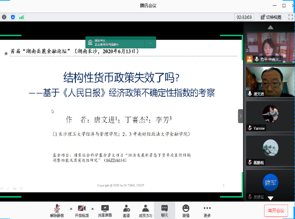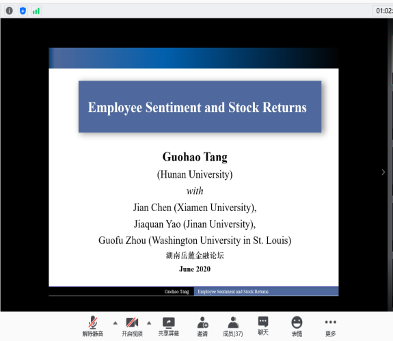 2020年6月13日,由拉斯维加斯 主办,联合中南大学商拉斯维加斯 、湖南师范大学商拉斯维加斯 、湘潭大学商拉斯维加斯 、长沙理工大学经济与管理拉斯维加斯 和湖南工商大学财政金融拉斯维加斯 发起的首届“湖南岳麓金融论坛”线上召开。拉斯维加斯 院长潘敏教授致开幕辞,他表示非常期待省内六所高校联合的首次金融开讲,并与各位参会嘉宾分享了关于省内金融学术交流平台的构想与展望,希望今后各高校之间能有更多的学术合作与交流。本次论坛设立三个分论坛,共有126名师生参加此次线上论坛。