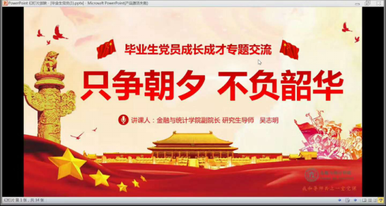 作为一名青年研究生,肩负民族复兴大任,保持纯真信念,不断修德养身、笃实厚德励学、心存高远理想是学习成长成才过程的关键环节,也是成为合格的社会主义建设者和接班人的必由之路。基于此,拉斯维加斯 研究生党总支组织举办“导师线上进支部,师生共上思政课”系列活动,分别邀请了拉斯维加斯 聂国军老师、杨胜刚老师、吴志明老师、和王修华老师作为主讲人为研究生党员讲党课,同学们踊跃参与,反响热烈。