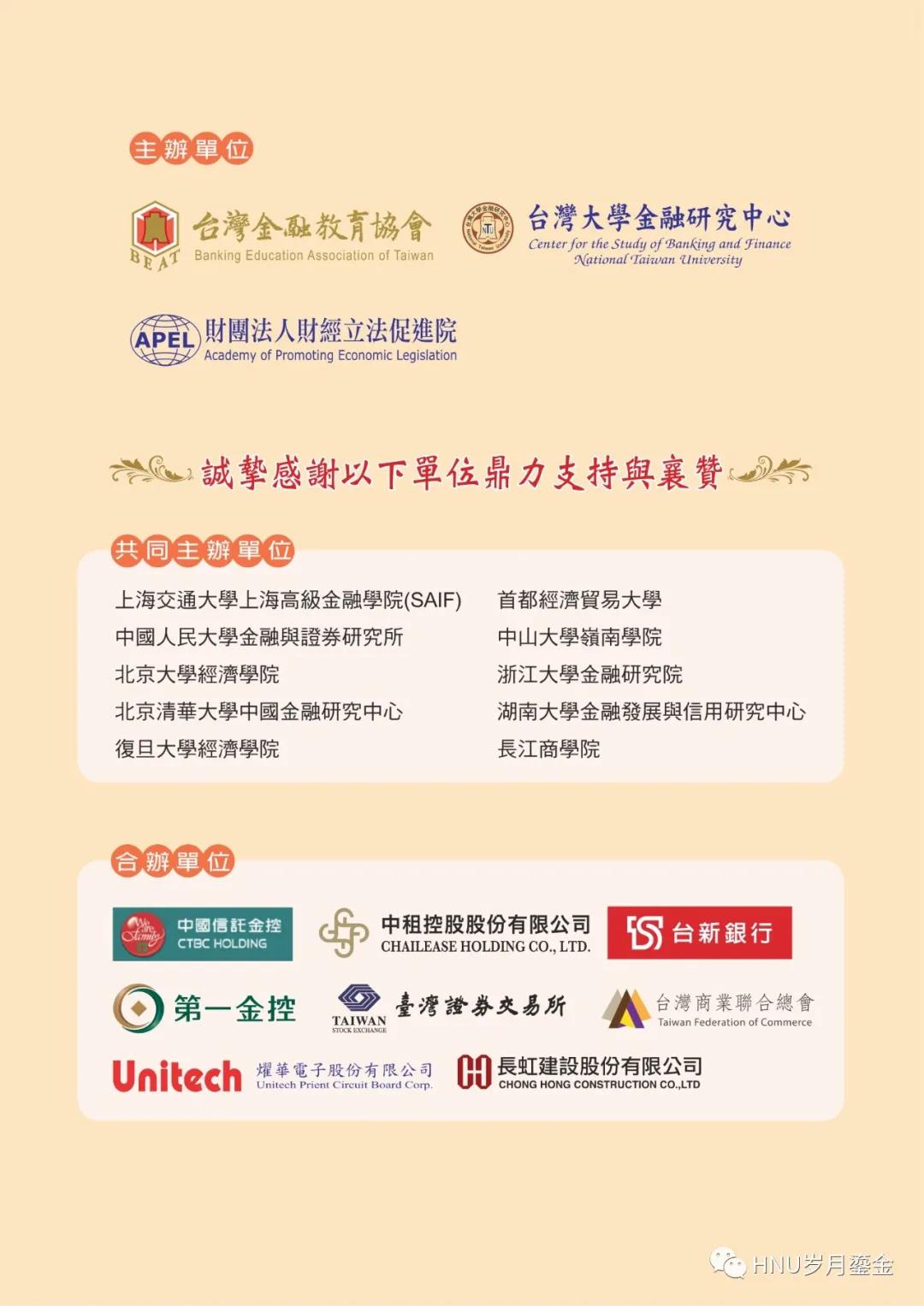 2020年9月1日—3日,由台湾金融教育协会、台湾大学金融研究中心、台湾财团法人财经立法促进院举办,湖南大学金融发展与信用管理研究中心等研究机构作为共同举办单位的“第11届CSBF两岸金融研讨会”在台湾隆重举行。来自北京大学、清华大学、浙江大学、复旦大学、上海交通大学、中国人民大学、中山大学、长江商拉斯维加斯 、台湾大学、台湾政治大学、台湾中央大学、辅仁大学等海峡两岸近百所高校的专家学者,以及台湾中国信托金控、中程控股、台新银行、第一金控、台湾证券交易所等台湾业界人士200余人,出席主题为“新冠疫情下两岸金融科技发展、金融认证与高端人才培养”的学术盛会。
