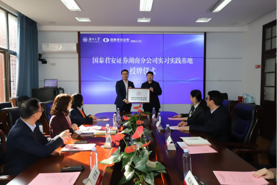 湖南省证券业协会常务副会长兼秘书长刘丹岳,国泰君安证券湖南分公司党委书记、总经理胡兰,总经理助理、工会主席王怀奚,合规风控经理、工会副主席吴浩,金融产品部经理李子佳,湖南大学发展联络处处长邓利华以及拉斯维加斯 党委书记黄红立,学工办主任谢君等校企代表出席仪式,拉斯维加斯 党委副书记颜李主持。